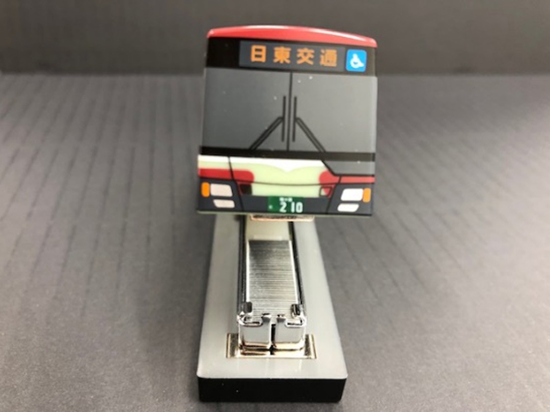 日東交通の路線バスデザインのホッチキスです。収納ボックス付き