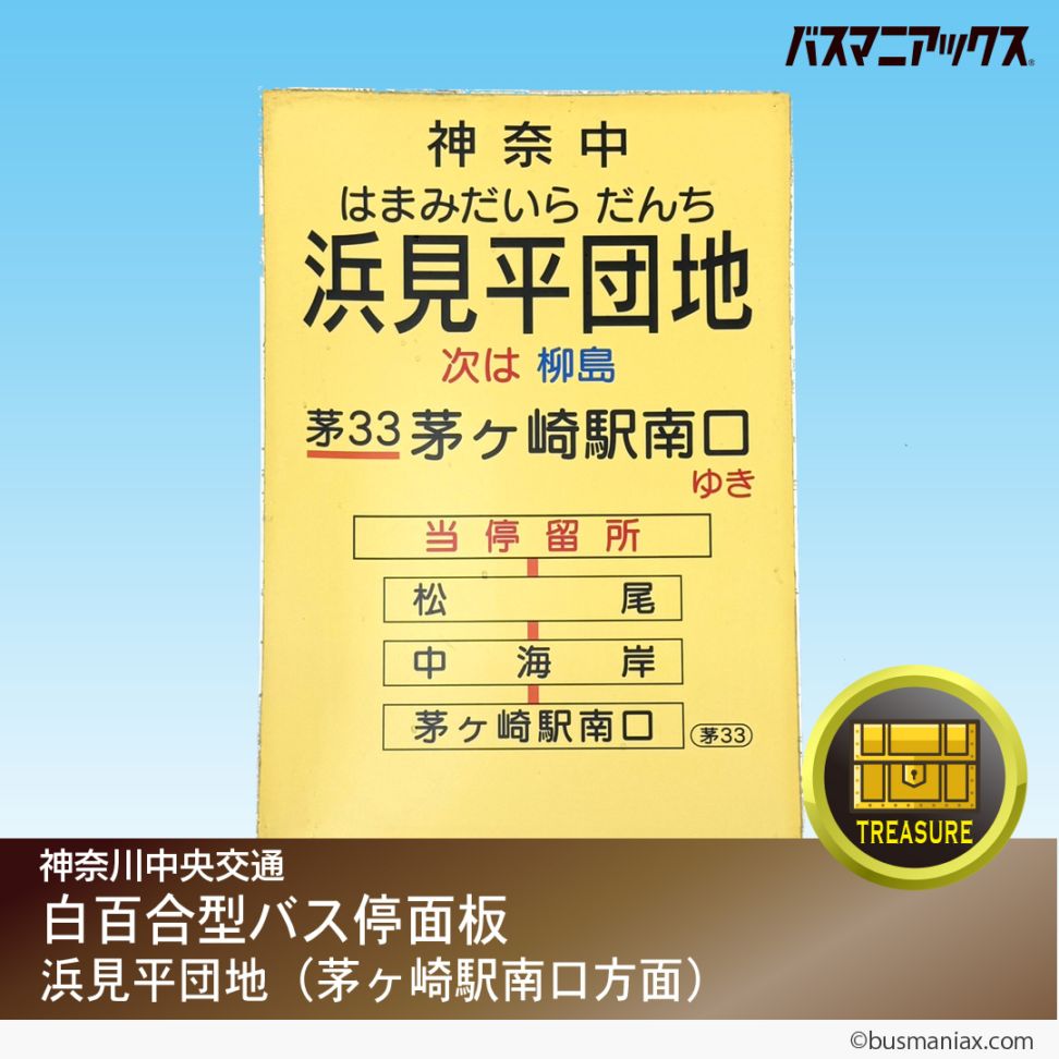 〈神奈川中央交通〉白百合型バス停面板(浜見平団地・茅ケ崎駅南口方面)