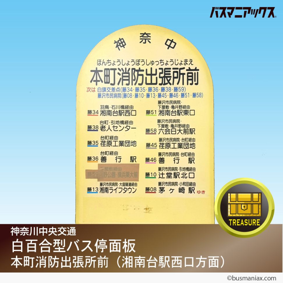 〈神奈川中央交通〉白百合型バス停面板(本町消防出張所前・湘南台駅西口方面)
