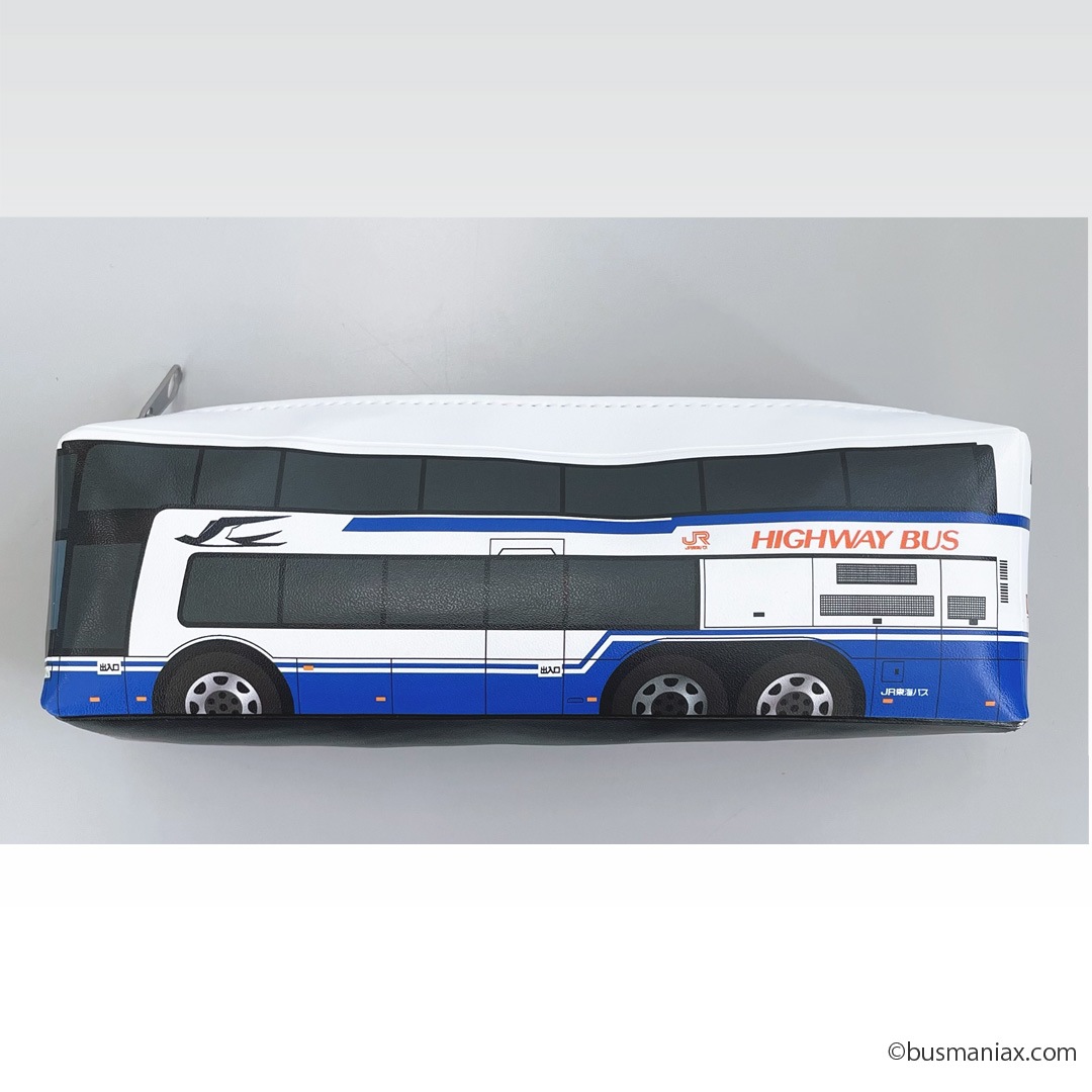 JR東海バスの2階建てバスがカッコいいペンケースに! 実車の細かい特徴を模型のように再現。まるで机の上をバスが走っているみたい!!